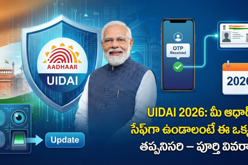 భారతదేశంలో ప్రతి పౌరుడికి అత్యంత ముఖ్యమైన గుర్తింపు పత్రం ఆధార్ కార్డ్. ఇది బ్యాంకింగ్ సేవలు, ప్రభుత్వ పథకాలు, మొబైల్ సిమ్ … UIDAI 2026: మీ ఆధార్ సేఫ్గా ఉండాలంటే ఈ ఒక్క పని తప్పనిసరి పూర్తి వివరాలుRead more